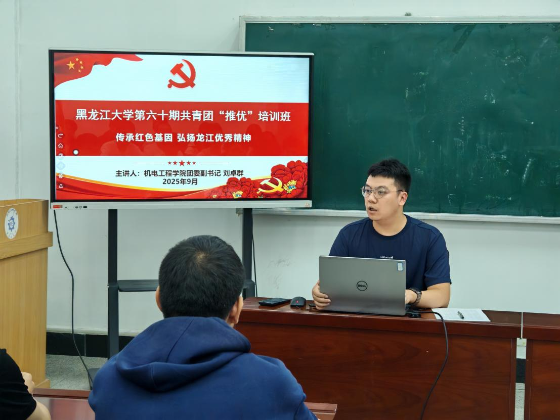 为进一步深入学习宣传贯彻党的二十大和二十届三中全会精神,引领团员青年认真学习领会习近平新时代中国特色社会主义思想,提升团员青年的思想理论水平和政治素养,保持和增强共青团的政治性、先进性、群众性,按照校团委《关于举办黑龙江大学第六十期共青团“推优”培训班的通知》相关要求,机电工程学院于9月28日下午在学院103会议室举办第六十期共青团“推优”培训班。本期培训由学院团委副书记刘卓群主讲,学院第六十期共青团“推优”培训班全体学员参加此次培训。