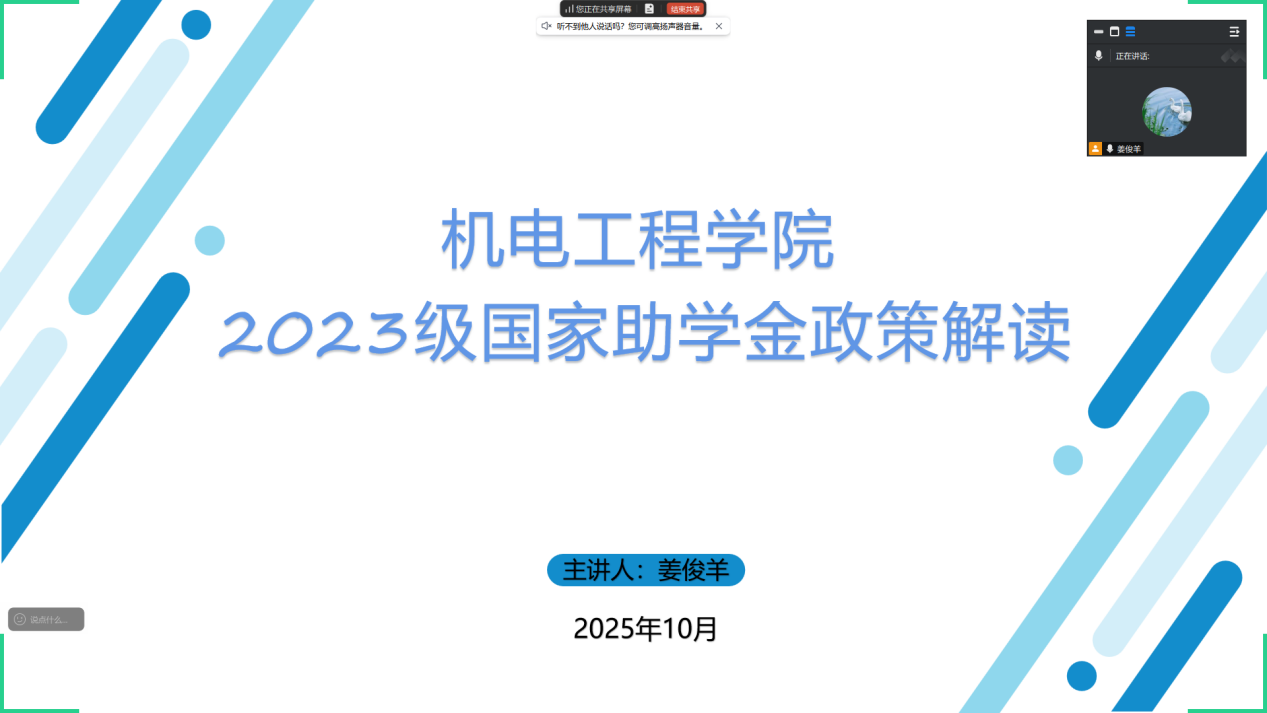 为确保资助政策应知尽知,学院2022-2025级以线上、线下相结合的方式召开了学院2025年国家助学金评定大会。学院各年级辅导员、在档家庭经济困难学生参加本次评定大会。