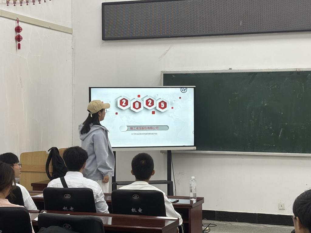 镇江液压股份有限公司招聘主管韩雯研围绕企业核心信息展开宣讲。宣讲过程中,学院2026届毕业生认真记录关键信息,对企业的技术实力、岗位匹配度和福利政策表现出浓厚兴趣,现场互动频繁。
