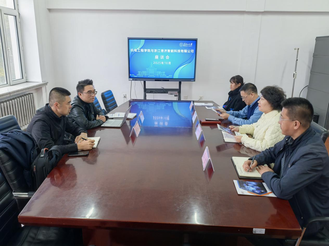 为深化校企合作,扎实推进访企拓岗专项行动,精准对接企业用人需求,拓展2026届毕业生就业渠道,进一步深化产教融合。10月15日下午,机电工程学院与浙江德济智能科技有限公司在学院312会议室举行了访企拓岗座谈会。机电工程学院院长孙来军、党委副书记杨宁宁、毕业年级辅导员张璐和王吉,浙江德济智能科技有限公司市场总监王晖、东北办事处负责人仲崇山参加此次座谈会。