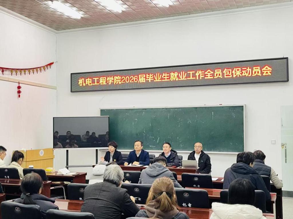为深入贯彻落实学校就业工作决策部署,进一步推动学院2026届毕业生高质量就业,全力为2026届毕业生保驾护航,近期,机电工程学院在学院103会议室召开2026届毕业生就业工作全员包保动员会,会议由学院党委副书记杨宁宁主持,学院领导班子及全体教师参加会议。