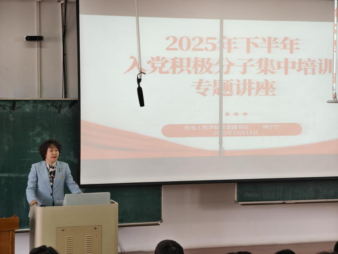 为深化入党积极分子培养教育,促使其筑牢理想信念根基、端正入党初心,全面提高党性修养,按照学校《关于推进2025年下半年发展党员工作重点任务的通知》要求,机电工程学院党委于10月9日至15日期间举办2025年下半年入党积极分子培训班。学院党委副书记杨宁宁、团委副书记刘卓群、团委副书记兼组织员姜俊羊、学生党员代表及本期入党积极分子培训班全体成员参加。