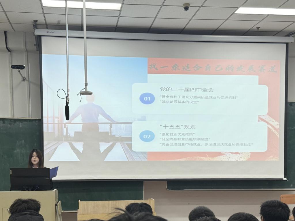 机电工程学院祁琪以《以青春之我赴时代之约—从江海潮头到龙江沃土,解码青年新时代就业赛道》为题进行宣讲。她从自身实践经历出发,为同学们勾勒出科技强国的宏伟蓝图。同时,她带领大家深入剖析机电专业在智能制造、高端装备等领域的关键作用,让同学们深刻认识到自身专业学习与国家科技发展需求紧密相连。